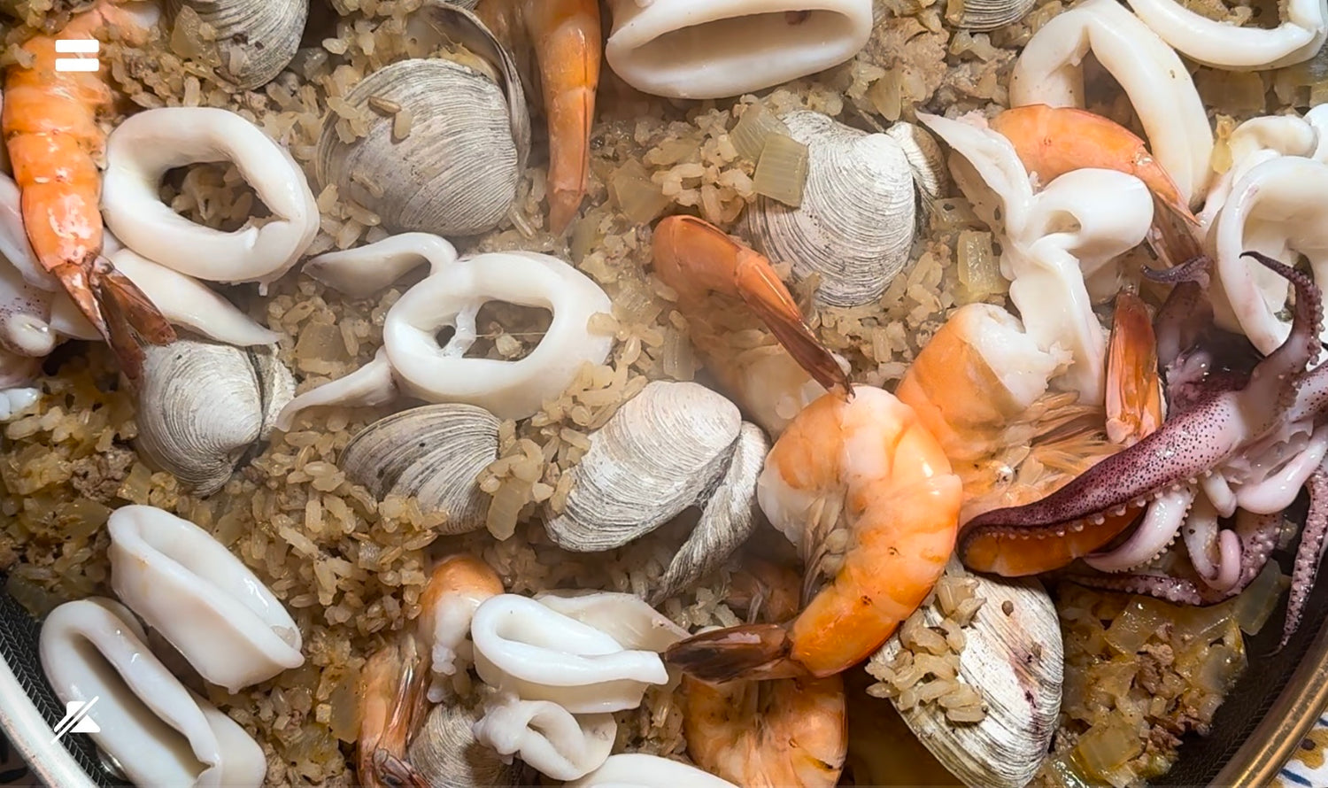 6. Add the calamari and shrimp, cover again, and let cook for an additional 7 minutes until seafood is tender and cooked through.